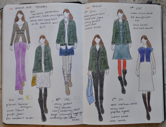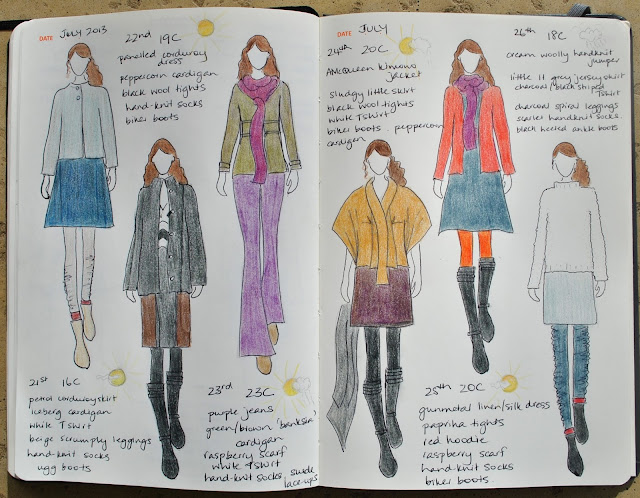 (I've pledged to wear only clothes handmade by me this year and to sketch my daily outfits in my Fashionary. I'm calling this the paper doll project)